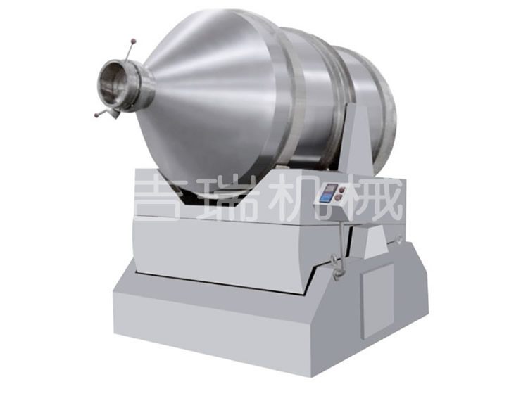 EYH系列二維運(yùn)動混合機(jī)主要由轉(zhuǎn)筒、擺動架、機(jī)架三大部分構(gòu)成。轉(zhuǎn)筒裝在擺動架上,由四個滾輪支撐并由兩個擋輪對其進(jìn)行軸向定位。在四個支撐滾輪中,其中兩個傳動輪由轉(zhuǎn)動動力系統(tǒng)拖動使轉(zhuǎn)筒產(chǎn)生轉(zhuǎn)動;擺動架由一組曲柄擺桿機(jī)構(gòu)來驅(qū)動,曲柄擺桿機(jī)構(gòu)裝在機(jī)架上,擺動架由軸承組件支撐在機(jī)架上。特點(diǎn)