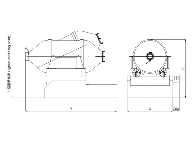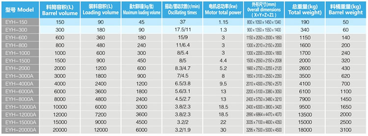 EYH系列二維運(yùn)動混合機(jī)的轉(zhuǎn)筒可同時進(jìn)行二個運(yùn)動,一個為轉(zhuǎn)筒的轉(zhuǎn)動,另一個為轉(zhuǎn)筒隨擺動架的擺動。被混合物料在轉(zhuǎn)筒內(nèi)隨轉(zhuǎn)筒轉(zhuǎn)動、翻轉(zhuǎn)、混和的同時,又隨轉(zhuǎn)筒的擺動而發(fā)生左右來回的摻混運(yùn)動,在這兩個運(yùn)動的共同作用下,物料在短時間內(nèi)得到充分的混合。EYH二維混科機(jī)適合所有粉、粒狀物料的混合。外型示意圖